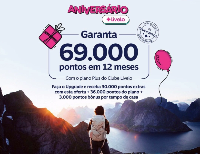 A Livelo está oferecendo aos seus clientes 69.000 mil pontos distribuídos ao longo de 12 meses no upgrade para o Clube Livelo Plus anual. Oportunidade é válida somente até amanhã, dia 18 de junho. Confira os detalhes e aproveite!