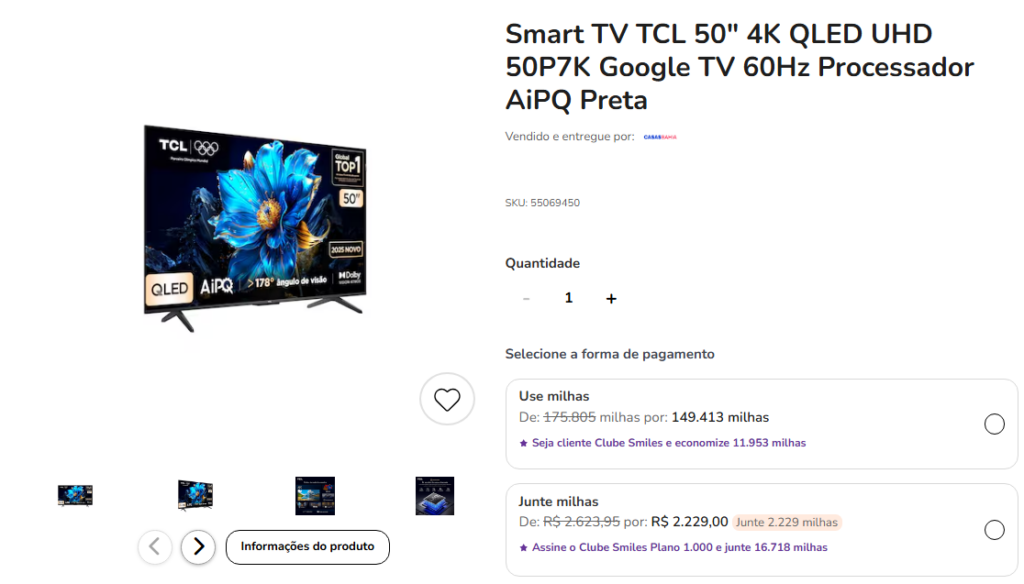 O Shopping Smiles está com uma nova oferta em parceria com a Casas Bahia, permitindo acumular até 9 milhas por real gasto em compras realizadas na loja. Confira abaixo os principais detalhes e veja como aproveitar a promoção!