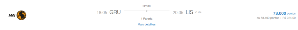 | São Paulo (GRU) | Lisboa (LIS) | TAAG | 73.000 | 10 de fevereiro/27 | Reserve aqui |
