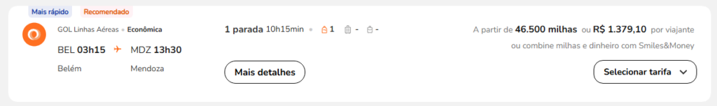| Belém (BEL) | Mendoza (MDZ) | GOL | 46.500 | 52.000 | 23 de setembro | Reserve aqui |