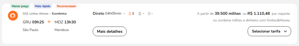 | São Paulo (GRU) | Mendoza (MDZ) | GOL | 39.500 | 44.000 | 1° de setembro | Reserve aqui |