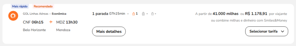 | Belo Horizonte (CNF) | Mendoza (MDZ) | GOL | 41.000 | 46.000 | 30 de agosto | Reserve aqui |