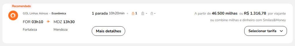 | Rio de Janeiro (GIG) | Mendoza (MDZ) | GOL | 39.500 | 44.000 | 5 de outubro | Reserve aqui |