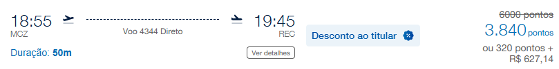 | Maceió (MCZ) | Recife (REC) | 3.840 | 6.000 | 29-Junho | Reserve aqui |