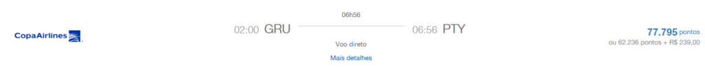 | São Paulo (GRU) | Panamá (PTY) | COPA | Econômica | 77.795 | 7 de junho | Reserve aqui |
