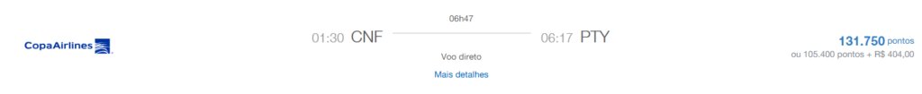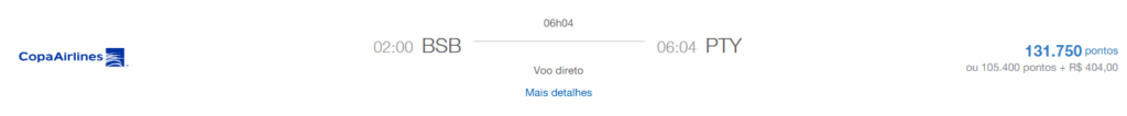 | Rio de Janeiro (GIG) | Panamá (PTY) | COPA | Econômica | 77.795 | 10 de junho | Reserve aqui |