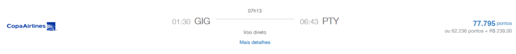 | Rio de Janeiro (GIG) | Panamá (PTY) | COPA | Econômica | 77.795 | 24 de junho | Reserve aqui |