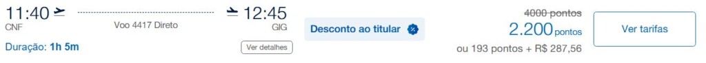 | Campinas (VCP) | Rio de Janeiro (GIG) | 4.400 | 8.000 | 25-junho | Reserve aqui |