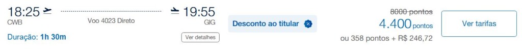 | Curitiba (CWB) | Rio de Janeiro (GIG) | 4.400 | 8.000 | 26-junho | Reserve aqui |