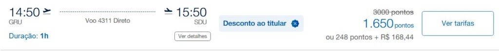 | São Paulo (GRU) | Rio de Janeiro (SDU) | 1.650 | 3.000 | 25-Junho | Reserve aqui |