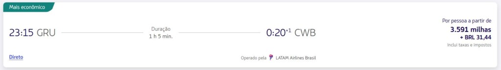 | São Paulo (GRU) | Curitiba (CWB) | 3.591 | 08-julho | Reserve aqui |