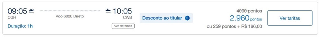 | São Paulo (CGH) | Curitiba (CWB) | 2.960 | 4.000 | 09-abril | Reserve aqui |
