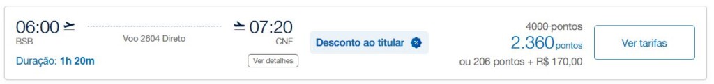 | Brasília (BSB) | Belo Horizonte (CNF) | 2.360 | 4.000 | 07-maio | Reserve aqui |