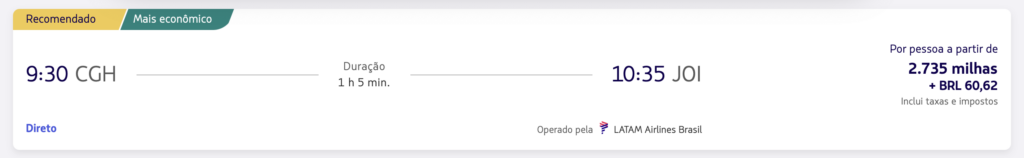 | São Paulo (CGH) | Joinville (JOI) | 2.735 | 11-maio | Reserve aqui |