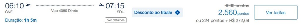 | Rio de Janeiro (GIG) | Belo Horizonte (CNF) | 2.560 | 4.000 | 21-maio | Reserve aqui |