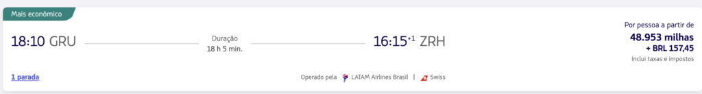| São Paulo (GRU) | Zurique (ZRH) | 48.953 | 03-novembro | Reserve aqui |