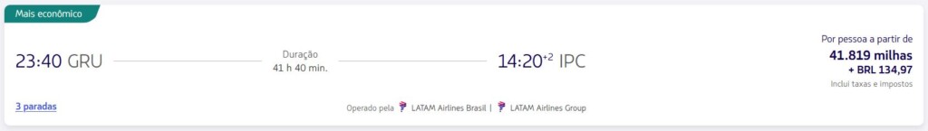 | São Paulo (GRU) | Ilha de Pascoa (IPC) | 41.819 | 09-maio | Reserve aqui |