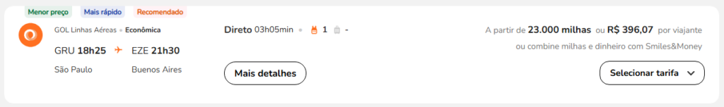 | São Paulo (GRU) | Buenos Aires (EZE) | GOL | 24.500 | 27.000 | 15-Junho | Reserve aqui |