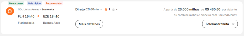 | Florianópolis (FLN) | Buenos Aires (EZE) | GOL | 23.000 | 25.000 | 21-Junho | Reserve aqui |