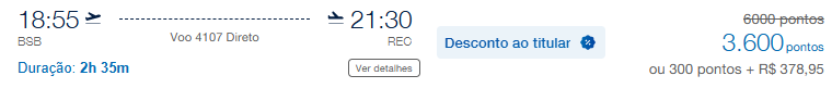 | Belém (BEL) | Recife (REC) | 4.400 | 8.000 | 27-Maio | Reserve aqui |