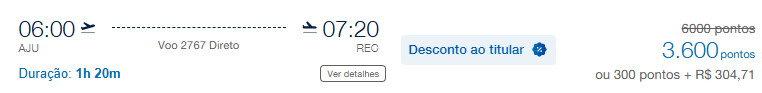 | Aracaju (AJU) | Recife (REC) | 3.600 | 6.000 | 04-Junho | Reserve aqui |