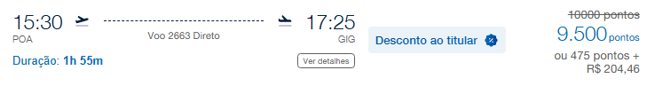 | Porto Alegre (POA) | Rio de Janeiro (GIG) | 20.900 | 22.000 | 30 de abril | Reserve aqui |