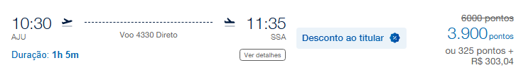 | Aracaju (AJU) | Salvador (SSA) | 3.900 | 6.000 | 30 de abril | Reserve aqui |