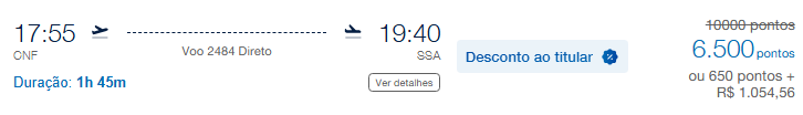 | Belo Horizonte (CNF) | Salvador (SSA) | 6.500 | 10.000 | 26 de abril | Reserve aqui |