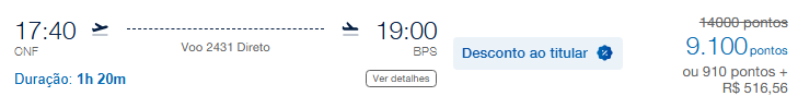 | Belo Horizonte (CNF) | Porto Seguro (BPS) | 9.100 | 14.000 | 16 de maio | Reserve aqui |