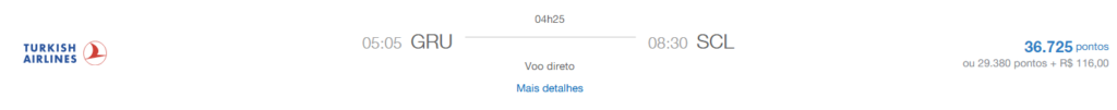 | São Paulo (GRU) | Santiago (SCL) | Azul pelo Mundo | Turkish Airlines | - | 37.725 | 24 de maio | Reserve aqui |