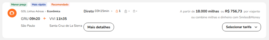 São Paulo (GRU) → Santa Cruz de La Sierra (VVI) – Smiles
