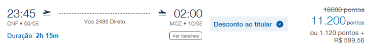 | Belo Horizonte (CNF) | Maceió (MCZ) | 11.200 | 16.000 | 23 de maio | Reserve aqui |