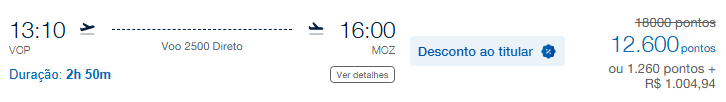 | Campinas (VCP) | Maceió (MCZ) | 16.200 | 18.000 | 25 de abril | Reserve aqui |