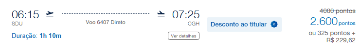 | Rio de Janeiro (SDU) | São Paulo (CGH) | 2.600 | 4.000 | 31 de maio | Reserve aqui |