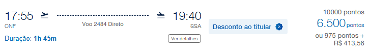 | Belo Horizonte (CNF) | Salvador (SSA) | 6.500 | 10.000 | 30 de maio | Reserve aqui |