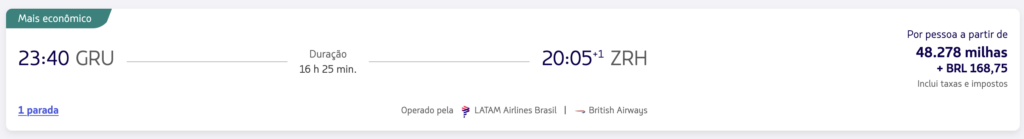 | São Paulo (GRU) | Zurique (ZRH) | 48.278 | 09-fevereiro | Reserve aqui |