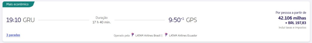 | São Paulo (GRU) | Ilhas Galápagos (GPS) | 42.106 | 25-maio | Reserve aqui |