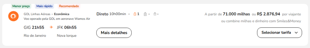 | Rio de Janeiro (GIG) | Nova York (JFK) | GOL | 71.000 | 79.000 | 24 de julho | Reserve aqui |