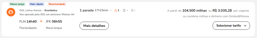 | Florianópolis (FLN) | Nova York (JFK) | GOL | 104.500 | 116.000 | 13 de setembro | Reserve aqui |