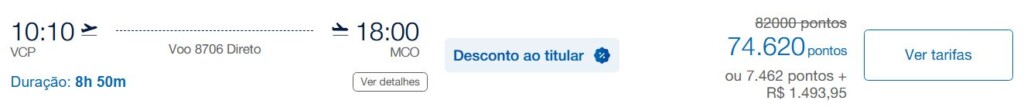 | São Paulo (VCP) | Orlando (MCO) | Azul | 74.620 | 82.000 | 26-maio | Reserve aqui |