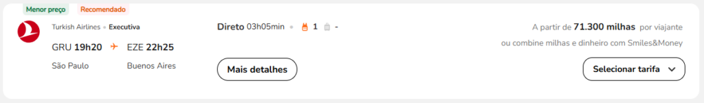| São Paulo (GRU) | Buenos Aires (EZE) | Turkish Airlines | 71.300 | 76.000 | 14-Maio | Reserve aqui |