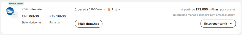 | Belo Horizonte (CNF) | Panamá (PTY) | Copa Airlines | 172.000 | 178.000 | 12-Novembro | Reserve aqui |