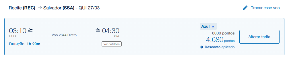 | Recife (REC) | Salvador (SSA) | 4.680 | 6.000 | 21 de Março | Reserve Aqui |