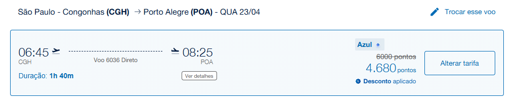 | Congonhas (CGH) | Porto Alegre (POA) | 4.680 | 6.000 | 10 de Junho | Reserve Aqui |