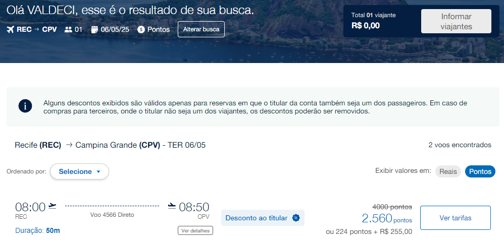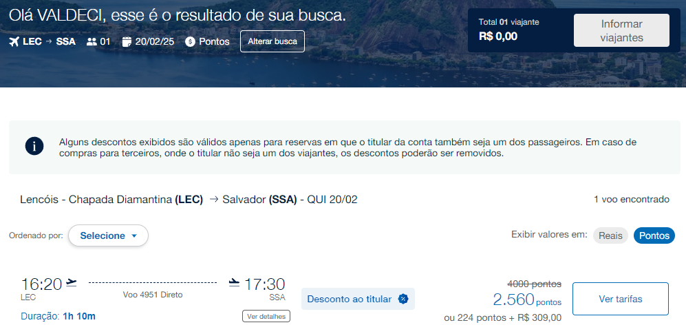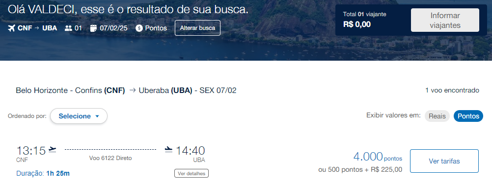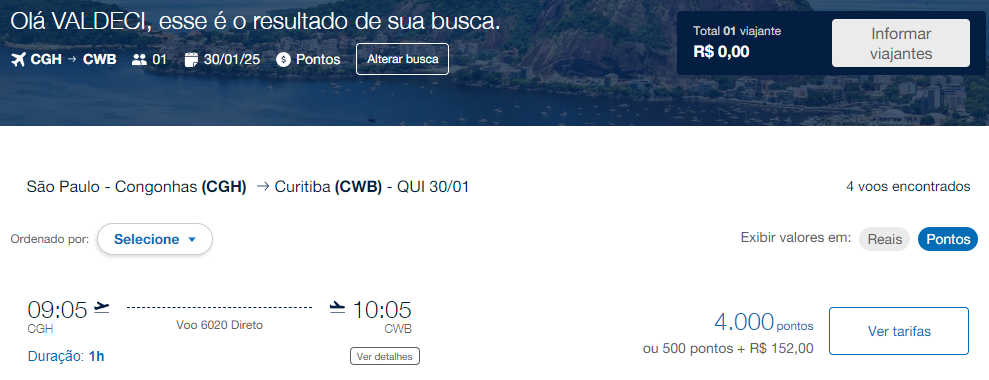 Disponibilidade encontrada por 4.000 pontos para todos os clientes. Clique aqui para reservar.