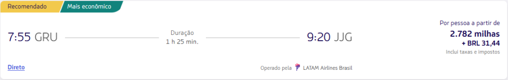 | São Paulo (GRU) | Jaguaruna (JJG) | LATAM Pass | - | 2.782 | 13 de agosto | Reserve aqui |