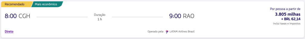 Na edição do Alerta de Passagens PPV de hoje, você confere algumas opções de trechos nacionais para resgatar gastando a partir de 3.805 milhas LATAM Pass + taxas. Abaixo, veja as disponibilidades.