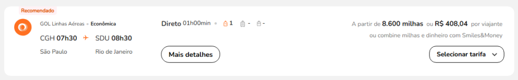 | Rio de Janeiro (SDU) | São Paulo (CGH) | 8.600 | 9.700 | 16 de maio | Reserve aqui |