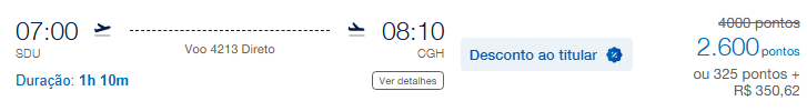 | Rio de Janeiro (SDU) | São Paulo (CGH) | 2.600 | 4.000 | 16 de maio | Reserve aqui |