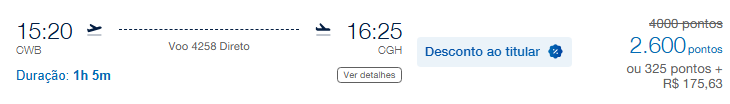| Curitiba (CWB) | São Paulo (CGH) | 2.600 | 4.000 | 18 de maio | Reserve aqui |